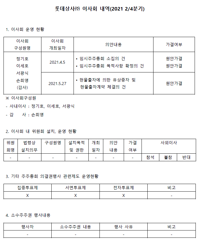 롯데상사(주) 이사회 내역(2021 2/4분기)