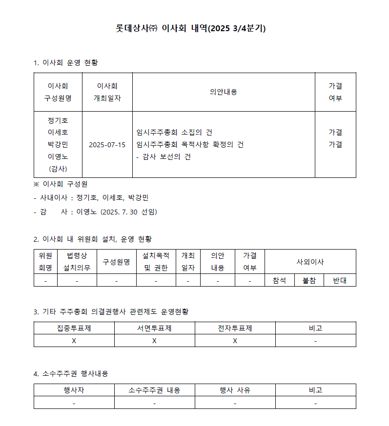 롯데상사(주) 이사회 내역(2025 3/4분기)